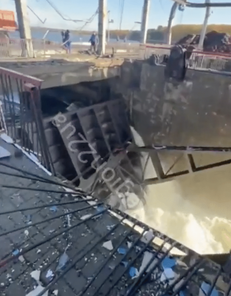 På videoklipp publicerade i proryska Telegramkanaler syns vatten läcka genom en sprucken slussport samt översvämmade skyttegravar som ska ha använts av ryska soldater. BBC har verifierat delar av filmmaterialet.