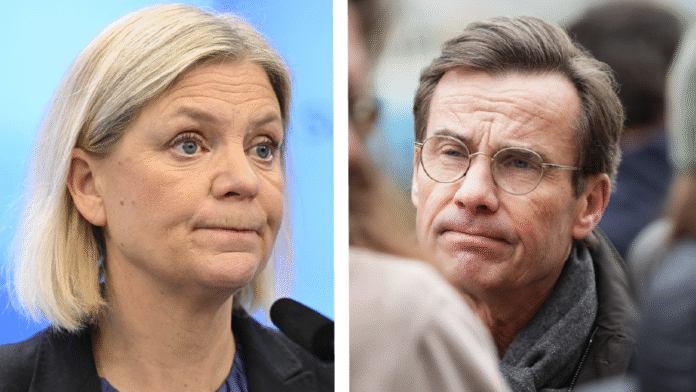Magdalena Andersson menar att regeringen tänkt fel när det gäller ekonomin. Men Ulf Kristersson menar att tillväxten snart kommer igång och att Socialdemokraterna ”svartmålar”.