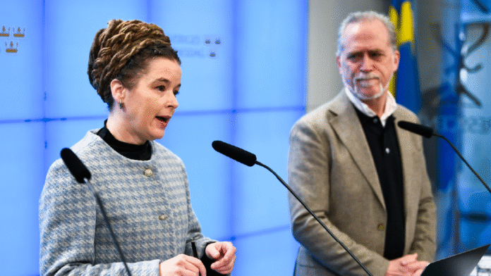 – De med lägst inkomster får det största stödet, säger språkröret Daniel Helldén på en pressträff med språkrörskollegan Amanda Lind.
